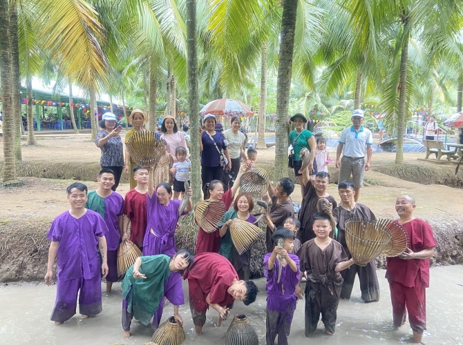 - Ditch Fishing Experience (Optional/Extra cost): Participate in "Tat muong bat ca"—a daily activity of Mekong Delta farmers. This rustic experience is incredibly fun; the fish you catch will be prepared into dishes in the authentic "Southern Reclamation" culinary style.