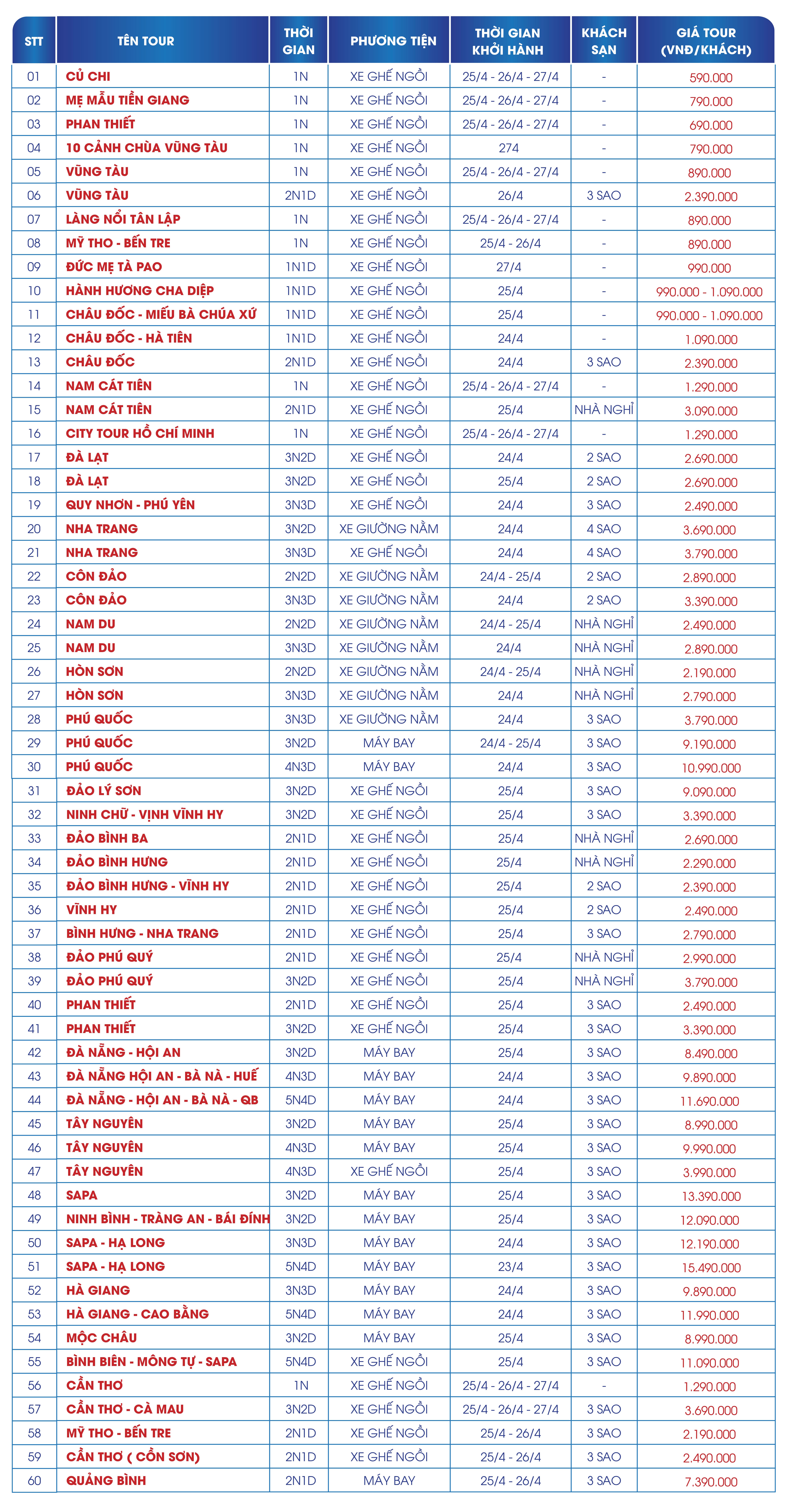 Hơn 50+ tour hấp dẫn đang mở bán: