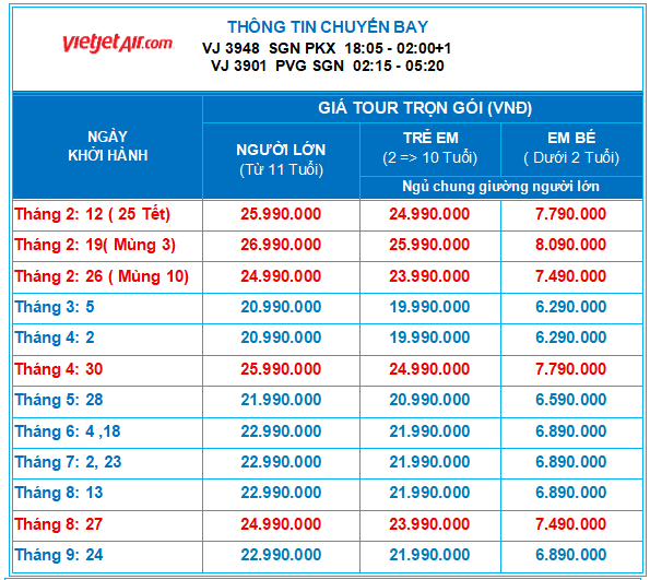 15h00: Trưởng đoàn đón Quý khách tại sân bay Tân Sơn Nhất để làm thủ tục checkin đáp chuyến bay VJ3948 SGN-PKX 18:05-02:00+1 đi Bắc Kinh