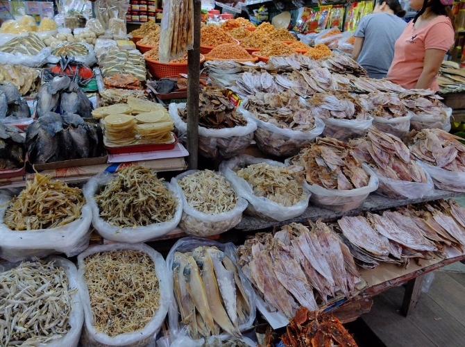 08h00: Qúy khách đến tham quan và mua sắm tại Chợ Châu Đốc là là trung tâm giao thương lớn của thành phố du lịch này. Đây là một điểm đến thể hiện bức tranh văn hóa đặc sắc của Châu Đốc nói riêng và du lịch An Giang nói chung. Chợ Châu Đốc có bày bán nhiều mặt hàng thú vị, bao gồm các khu như thực phẩm ăn liền, rau củ quả, mắm hay quần áo. Chính nhờ sự sắp xếp và bày trí khá hợp lý, các tín đồ du lịch có thể đến đây tham quan và mua sắm một cách thuận tiện hơn. Chợ Châu Đốc có buôn bán nhiều mặt hàng đặc sản của vùng đất này như mắm, bún cá hay thốt nốt… Những món ăn này đều thể hiện rõ nét văn hóa Khmer và nếp sống con người ở miền Tây sông nước vốn phì nhiêu về sản vật tôm cá.
