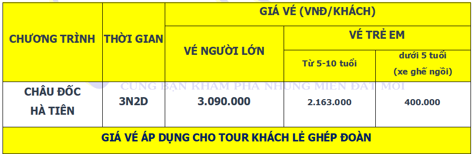 Lịch trình chi tiết tour TOUR CHÂU ĐỐC – HÀ TIÊN 3 NGÀY 2 ĐÊM