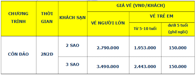 TOUR CÔN ĐẢO 2N2Đ