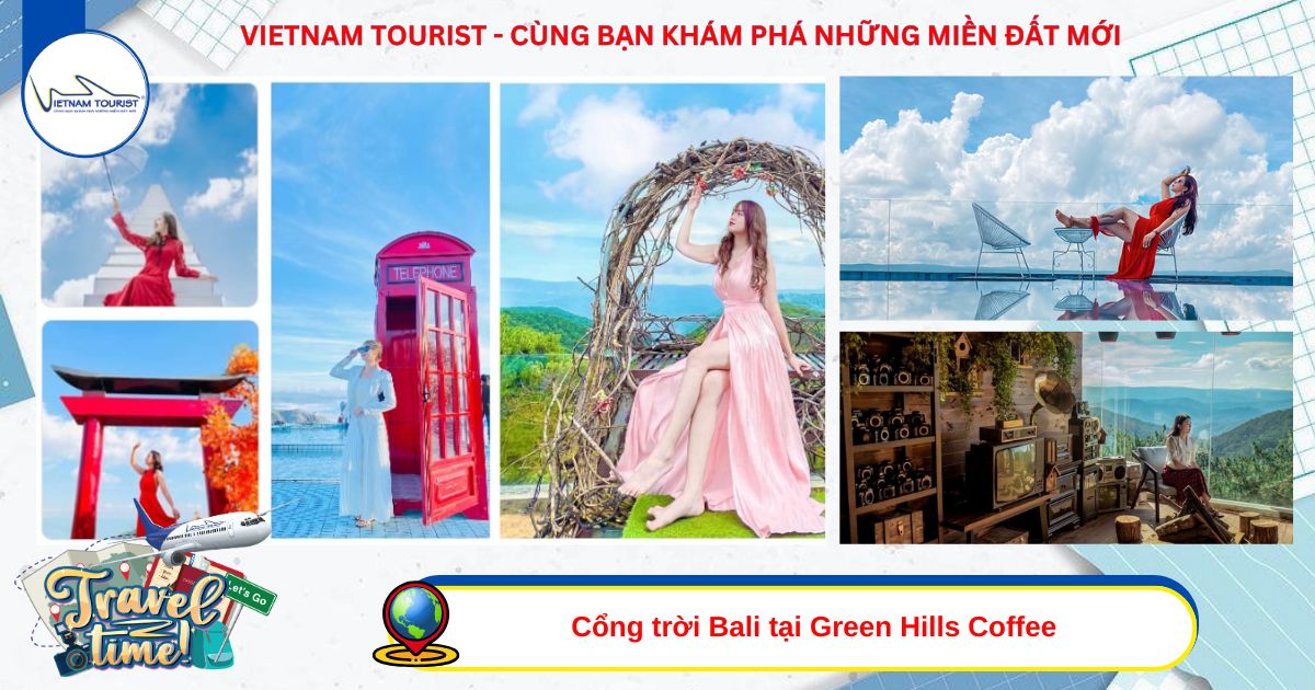 10h00: Quý khách đến check in Cổng trời Bali tại Green Hills Coffee – điểm check-in tuyệt đẹp giữa lòng Đà Lạt, đã tạo nên cơn sốt trong giới trẻ nhờ độ “chịu chơi" khi mô phỏng lại công trình nổi tiếng của đền Lempuyang ở Indonesia. Mặc dù bản gốc là cánh cổng thiêng liêng, nhưng tại Đà Lạt, nó là một background cực ấn tượng để có những bức ảnh “chill hết nấc". Với cổng trời bằng gỗ mang tông nâu trầm lắng, xung quanh là rừng thông bạt ngàn, du khách sẽ có cảm giác lạc vào chốn thần tiên tựa Bali. Không chỉ có cổng trời Bali, Green Hills còn sở hữu nhiều tiểu cảnh lãng mạn cho du khách thỏa sức chụp ảnh như hồ trên mây mờ ảo, hình ảnh nấc thang thiên đường, tổ chim treo giữa rừng thông...