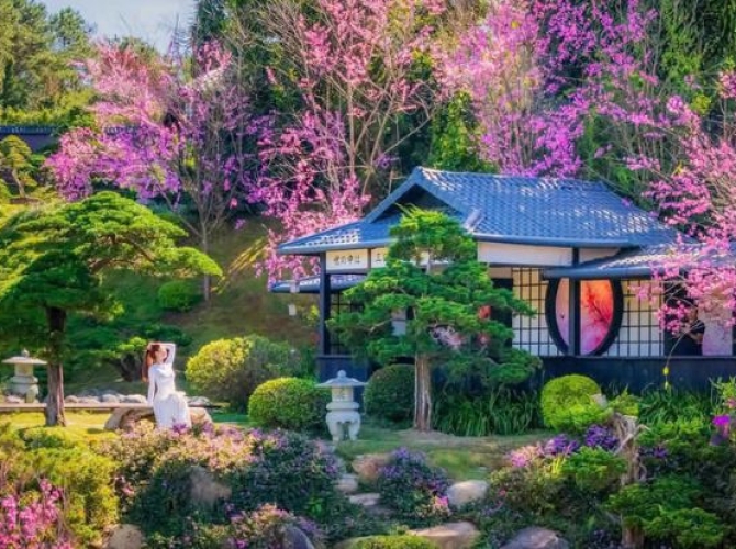 09h00: Quý khách đến với khu du lịch “ Que Garden” – Tiểu Nhật Bản đẹp ngơ ngẩn giữa lòng Đà Lạt. Với diện tích 20.000m² và được thể hiện tinh tế bởi những tiểu cảnh đậm chất Nhật Bản, mỗi bước chân sẽ dẫn quý khách đến mọi góc trang trí xinh đẹp, như hồ cá koi cùng câu chuyện bên lề xúc động, khu vườn bonsai lá kim xanh mướt lớn nhất Việt Nam, khu vực cà phê rộng rãi với thiết kế đậm chất Nhật Bản. Ngoài ra còn có hàng loạt tiểu cảnh mang đậm sắc màu Nhật Bản như hàng cổng Tori, khu thác nước, khu phố Nhật, con đường tre,… Mỗi góc đều được chăm chút từng đường nét, chỉ cần đưa máy ảnh lên là có ngày hình đẹp.