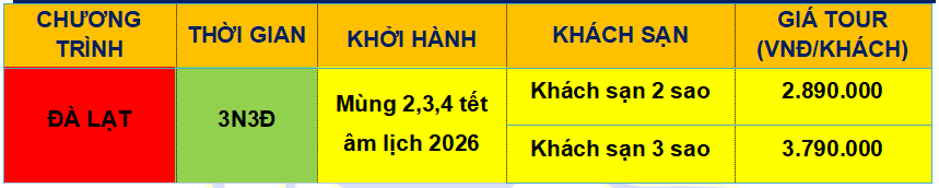 Khởi hành: Tối mùng 2,3,4 tết âm lịch 2026