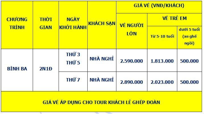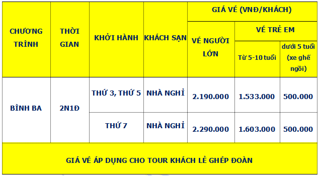 Lịch trình chi tiết tour TOUR ĐẢO BÌNH BA 2 NGÀY 1 ĐÊM