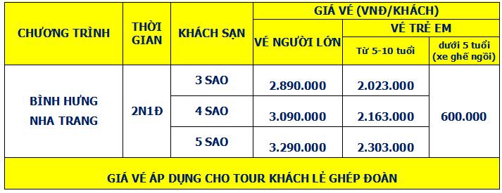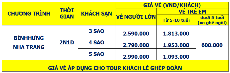 Lịch trình chi tiết tour TOUR ĐẢO BÌNH HƯNG - NHA TRANG 2 NGÀY 1 ĐÊM