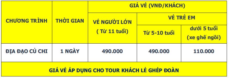 Lịch trình chi tiết tour TOUR ĐỊA ĐẠO CỦ CHI 1 NGÀY