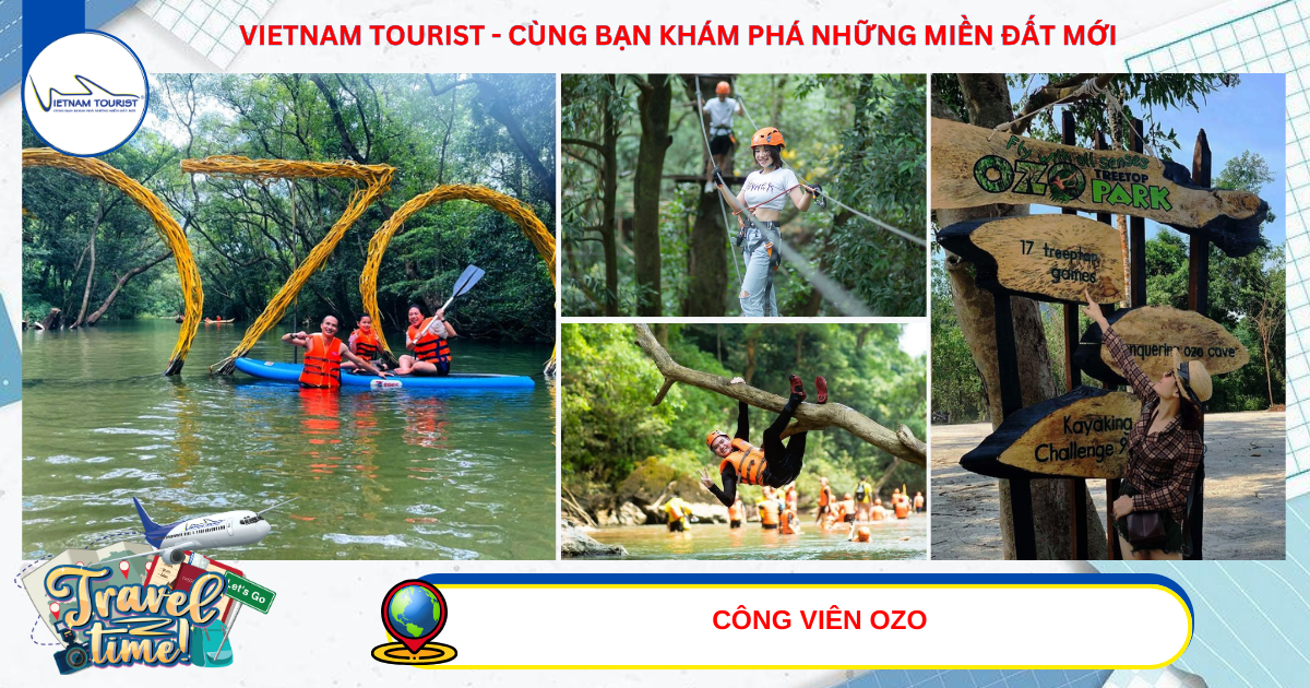 13h30: Xe và hướng dẫn viên đưa đoàn đến với Khu du lịch sinh thái Ozo Park nằm trong quần thể Vườn quốc gia Phong Nha - Kẻ Bàng. Hệ thống trò chơi “độc nhất vô nhị” giữa thiên nhiên xanh bạt ngàn hứa hẹn sẽ mang đến cho bạn những trải nghiệm không thể nào quên. Với diện tích lên tới 5ha bao phủ bởi rừng trên núi đá vôi, nhiệm vụ “tìm góc sống ảo” không thể dễ dàng hơn khi đến với công viên Ozo. Đặc biệt, tại đây quý khách có thể tắm suối với làn nước trong xanh, cực mát mẻ.