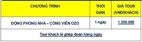 Lịch trình chi tiết tour TOUR ĐỘNG PHONG NHA – CÔNG VIÊN OZO