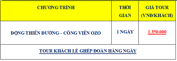 Lịch trình chi tiết tour TOUR ĐỘNG THIÊN ĐƯỜNG – CÔNG VIÊN OZO