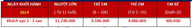 Trẻ em từ 11 tuổi: 100% giá tour người lớn