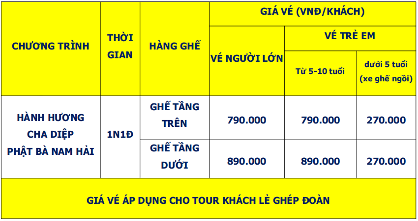 TOUR HÀNH HƯƠNG CHA DIỆP - PHẬT BÀ MẸ NAM HẢI 1N1Đ