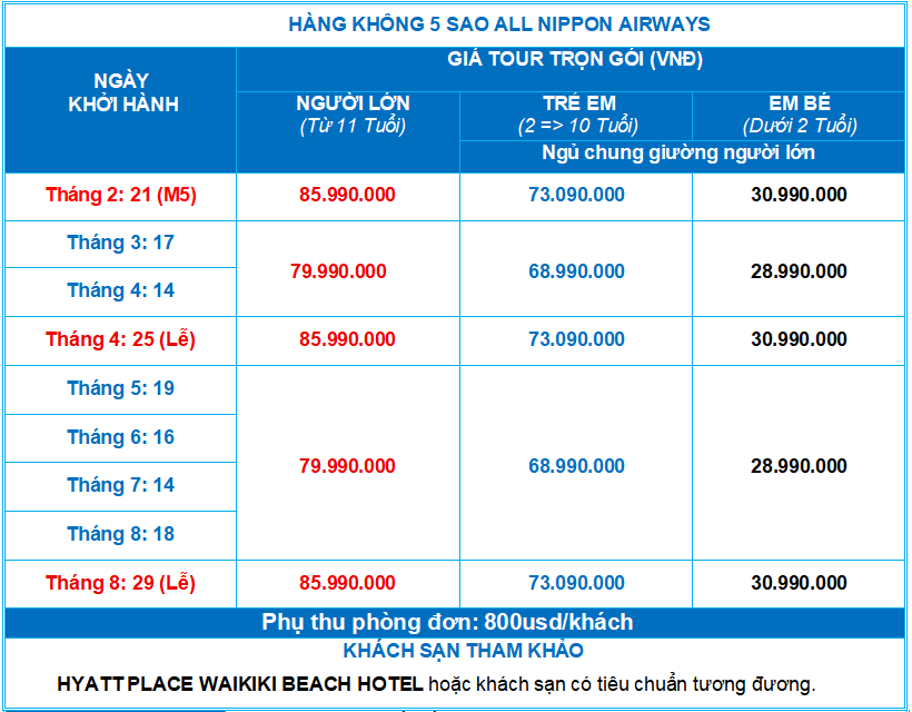 CHƯƠNG TRÌNH DU LỊCH HAWAII