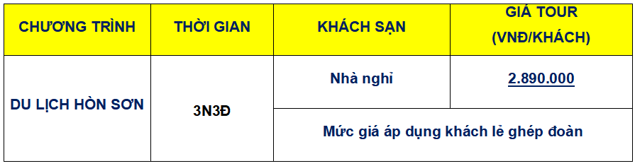 Lịch trình chi tiết tour TOUR HÒN SƠN 3 NGÀY 3 ĐÊM