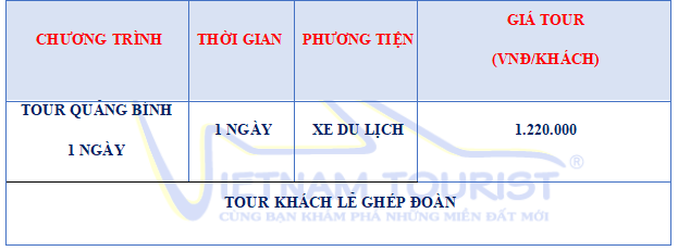 08h00: Xe và HDV VIETNAM TOURIST đón quý khách tại TP. Đồng Hới (Khách sạn, nhà ga, sân bay), sau đó khởi hành đi Vườn quốc gia Phong Nha - Kẻ Bàng tham quan Động Phong Nha – “Kỳ quan đệ nhất động”