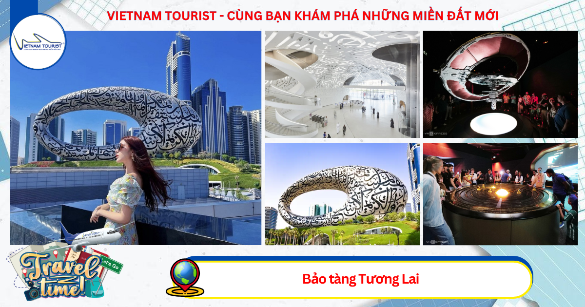 Bảo tàng Tương Lai do kiến trúc sư Shaun Killa của Killa Design và được Tổ chức Tương Lai Dubai ủy quyền. Đây là một trong những công trình độc nhất tại Dubai. Bảo tàng kim loại 7 tầng cao 77m, thiết kế hình elip và được trang trí bởi 14.000m thư pháp Arab trên nền thép không gỉ. Quý khách chụp ảnh bên ngoài bảo tàng.