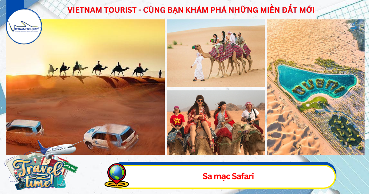 Khám phá Sa mạc Safari (1xe/6 khách). Đến điểm dừng chân, cửa ngõ trước khi vào sa mạc. Quý khách bắt đầu cuộc phiêu lưu của mình với trò chơi mạo hiểm trên các đồi cát.