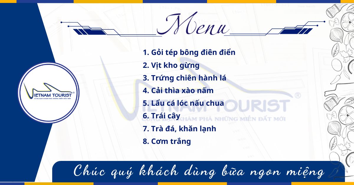 Ăn chính: 1 bữa ăn chính set menu (150.000vnđ/xuất)