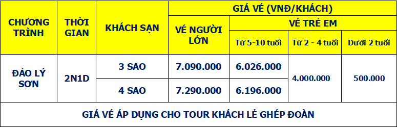Lịch trình chi tiết tour TOUR LÝ SƠN 2N1D KHỞI HÀNH TỪ TP HỒ CHÍ MINH