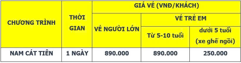 Lịch trình chi tiết tour TOUR NAM CÁT TIÊN 1 NGÀY
