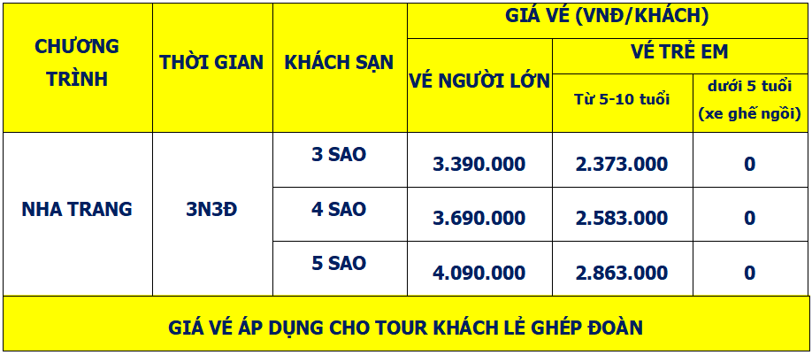 Lịch trình chi tiết tour TOUR NHA TRANG 3 NGÀY 3 ĐÊM