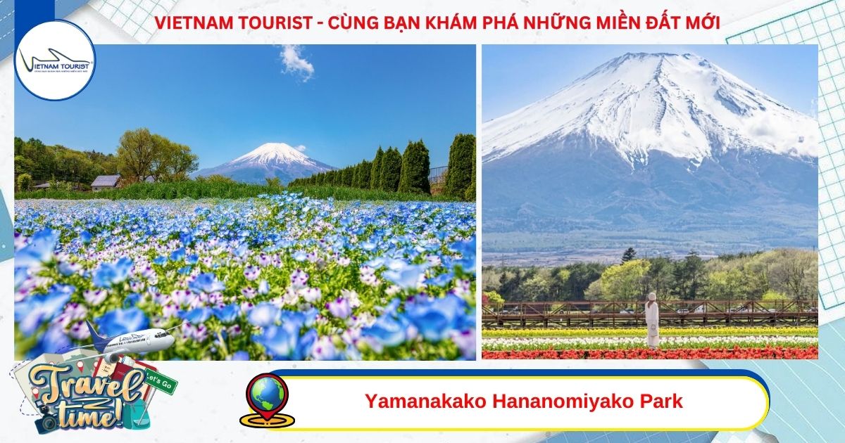 Yamanakako Hananomiyako Park – là thời điểm tuyệt đẹp để ngắm hoa tulip rực rỡ sắc màu và “hoa mắt biếc” hay “hoa tình yêu bé nhỏ”. Hoa Nemophila tạo nên khung cảnh lãng mạn như một bức tranh thiên nhiên đầy ấn tượng, với cánh đồng hoa bát ngát nở rộ khắp công viên dưới chân núi Phú Sĩ (khoảng tháng 5).