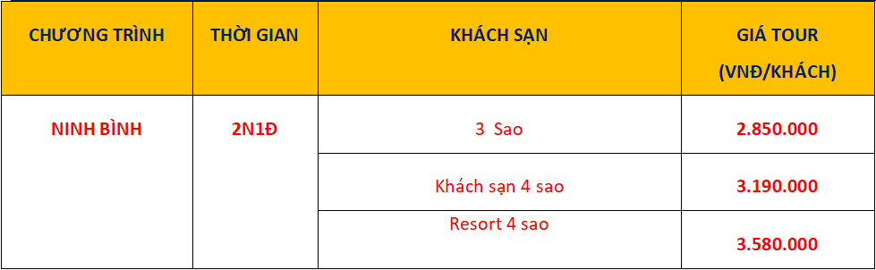 Lịch trình chi tiết tour TOUR NINH BÌNH 2 NGÀY 1 ĐÊM TỪ HÀ NỘI