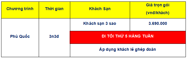 1. Tour Phú Quốc 3 ngày 2 đêm khách lẻ ghép đoàn khởi hành từ TP.HCM