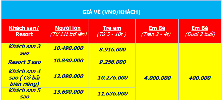 Trẻ em từ 10 tuổi: 100% giá tour người lớn