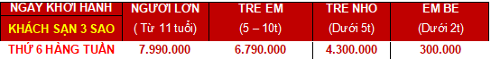 Khách sạn 3 sao: 7.490.000 vnđ/ khách