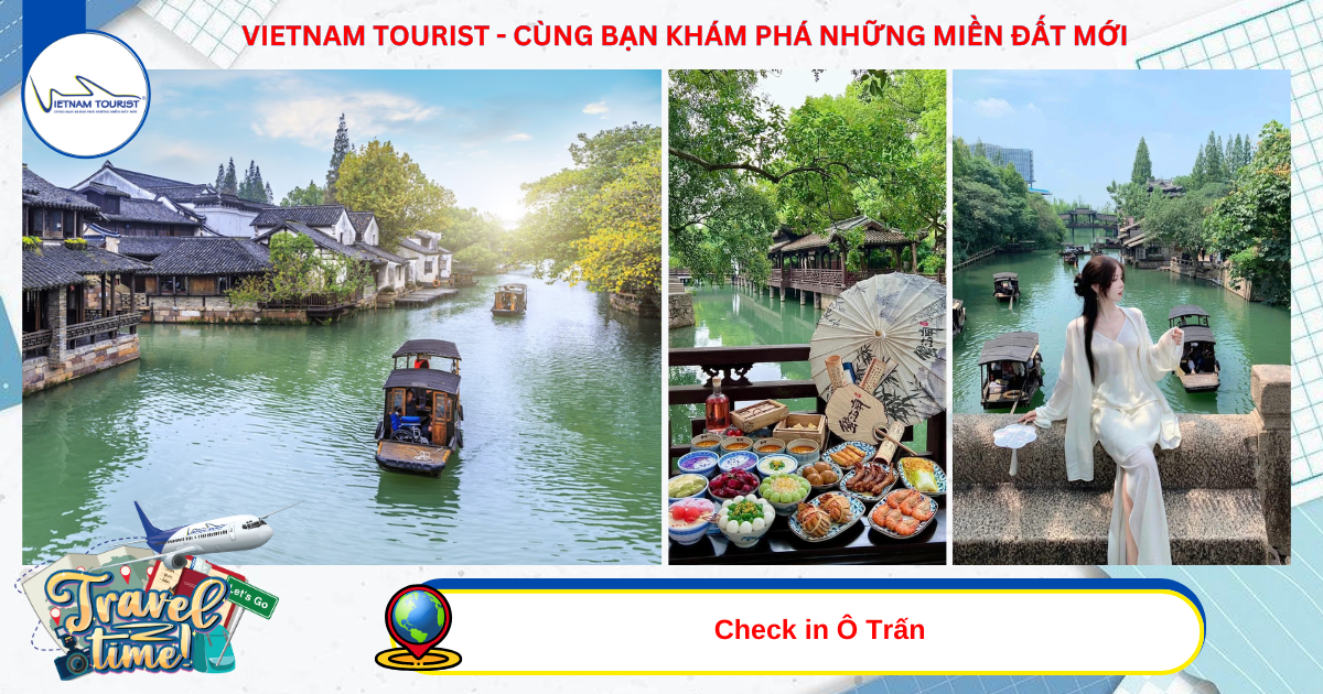 Sau đó khởi hành đi Ô Trấn, Ô trấn (Phía Tây là một trấn cổ sông nước lớn nhất Trung Quốc với hơn 1300 năm lịch sử thể hiện qua những cây cầu đá cổ, những con đường lát đá và những công trình gỗ chạm khắc tinh tế. Gần như vẫn giữ được kiến trúc cùng tập tục sinh sống hơn 1.000 năm qua nên Ô Trấn trở thành điểm du lịch mà ai cũng muốn đến một lần.