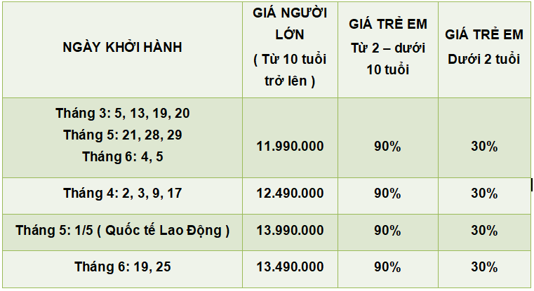 GIÁ TOUR BAO GỒM