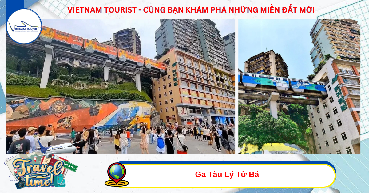 Ga Tàu Lý Tử Bá (nằm ở phía Tây, quận Du Trung, thành phố Trùng Khánh) - Quý khách sẽ tận mắt chứng kiến khoảng khắc "đoàn tàu lao thẳng vào tòa cao ốc" cực kì ấn tượng và thú vị. Đường sắt trên cao đi xuyên chung cư và ga tàu được bố trí ngay trong lòng tòa nhà chính là nét đặc trưng hiếm có của thành phố Trùng Khánh.