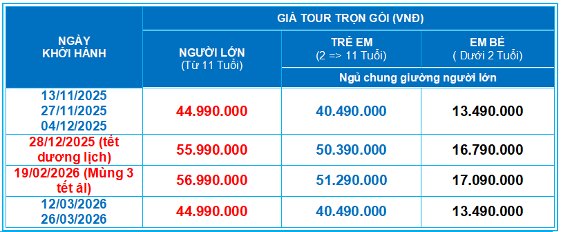 Đợt 2: Thanh toán số tiền tour còn lại trước ngày khởi hành ít nhất 10 ngày (Không tính thứ bảy, chủ nhật).