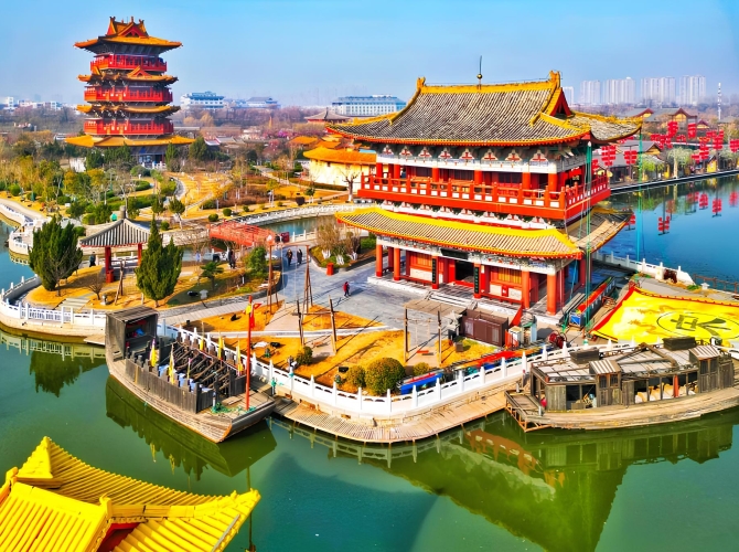 Đoàn tham quan dạo chơi tại công viên “Thanh Minh Thượng Hà Viên” là danh lam thắng cảnh cấp quốc gia, khu công viên chủ đề tuyệt đẹp tái hiện văn hóa, lịch sử thời nhà Tống. Tái hiện các trò chơi dân giân như: đá bóng nữ, đu dây trên mặt nước, gà bay, múa bóng cung đình, múa rối trên nước và múa theo nhạc Trung Hoa. Buổi tối, biểu diễn quy mô lớn sẽ giúp bạn ôn lại khung cảnh thời nhà Tống xưa.