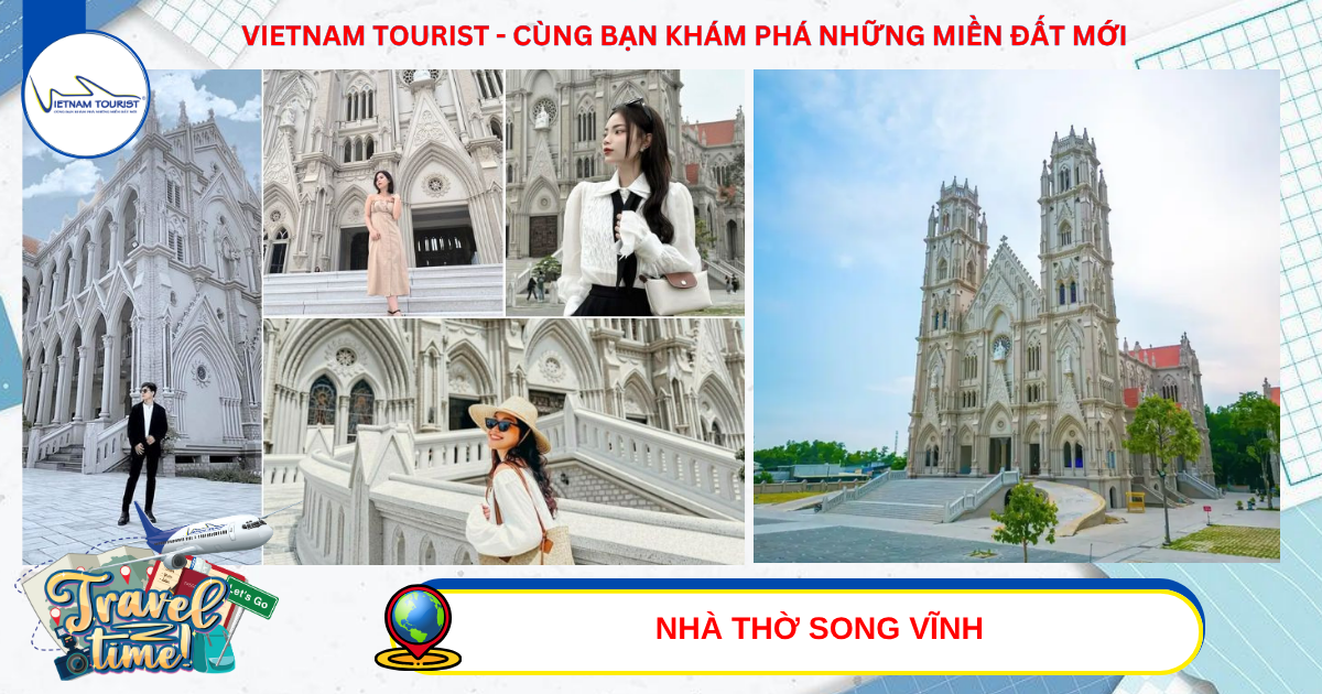 11h00: Qúy khách đến với Nhà Thờ Song Vĩnh, được ví như “cung điện châu Âu ở Vũng Tàu”. Nằm ngay mặt tiền quốc lộ 51, đoạn qua huyện Tân Thành, tỉnh Bà Rịa-Vũng Tàu, nhà thờ Song Vĩnh gây chú ý cho những ai đi ngang qua bởi dáng vẻ nguy nga, diễm lệ của ngôi thánh đường mang đậm nét kiến trúc Gothic phương Tây.