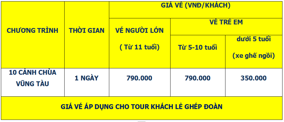 Lịch trình chi tiết tour TOUR HÀNH HƯƠNG 10 CẢNH CHÙA VŨNG TÀU 1 NGÀY