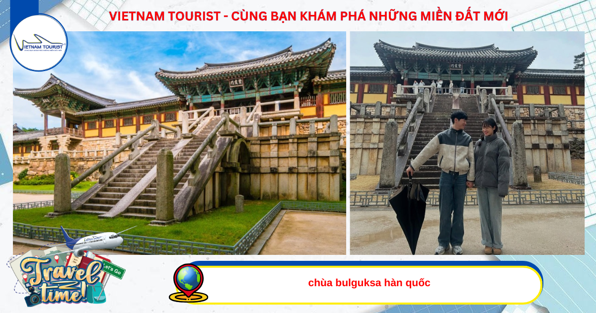 Chùa Bulguksa - ngôi chùa nghìn năm tuổi nằm ẩn mình trên sườn núi Tohama hùng vĩ. Nơi đây sở hữu một bức tranh tráng lệ, với những mái cong uy nghi, những pho tượng Phật uy nghiêm và những chi tiết trang trí tinh xảo, tất cả hòa quyện tạo nên một không gian tâm linh thanh tịnh, mang đến cảm giác bình yên cho tâm hồn.