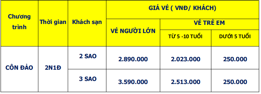 Lịch trình chi tiết tour TOUR CÔN ĐẢO 2N1Đ KHỞI HÀNH TỪ CẦN THƠ