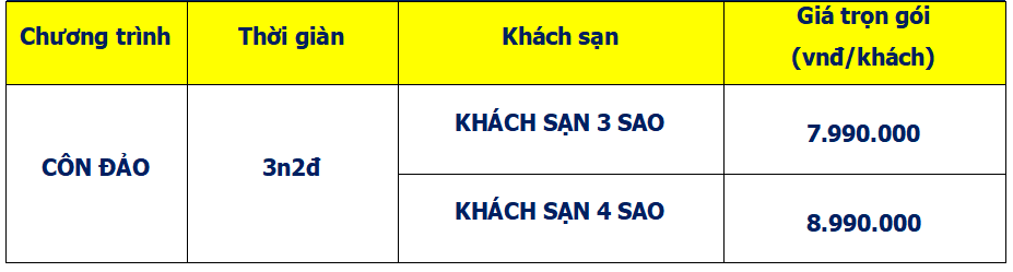 TOUR CÔN ĐẢO 3 NGÀY 2 ĐÊM