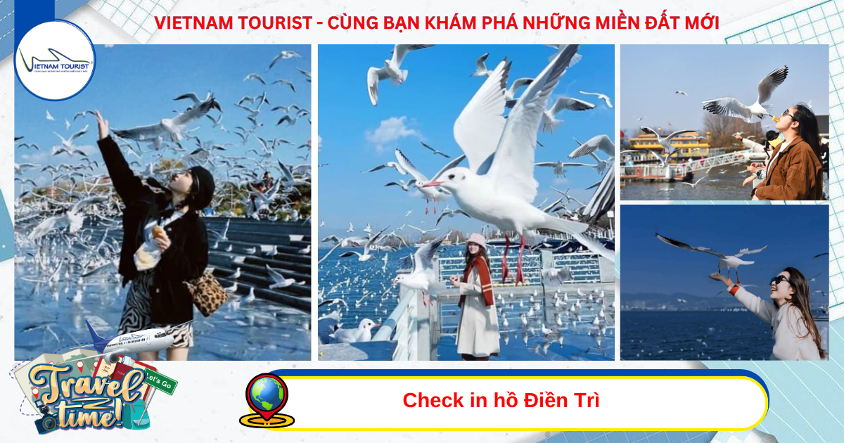 Quý khách ăn sáng tại khách sạn, Sau bữa sáng, đoàn khởi hành tham quan hồ Điền Trì ngắm chim hải âu. Du khách có thể đi dạo trên đập, ngắm nhìn hoặc cho chim ăn; từng đàn hải âu bay lượn trên mặt hồ, hòa cùng bầu trời xanh và làn nước biếc tạo nên khung cảnh tuyệt đẹp.