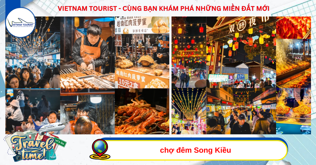Quý khách tự do khám phá chợ đêm Song Kiều, khu chợ đêm nổi tiếng và sầm uất, quy tụ nhiều món ăn đặc sản Vân Nam như đậu hũ nướng, gà hấp nồi hơi, bún lạnh, bánh hoa, bún qua cầu... cùng các gian hàng thủ công, trang sức và quần áo mang đậm nét địa phương. Khi đêm xuống, ánh đèn rực rỡ và không khí náo nhiệt khiến nơi đây trở thành điểm lý tưởng để du khách thưởng thức ẩm thực và trải nghiệm cuộc sống đêm đặc trưng của Côn Minh.