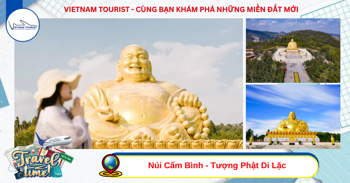 Núi Cẩm Bình - Tượng Phật Di Lặc Với độ cao 19.99 mét, bức tượng phủ bóng xuống chúng sinh. Đây là tượng Phật Di Lặc bằng đồng ngồi lớn nhất thế giới, không ẩn mình trong chùa chiền, mà hòa làm một với núi non, thành phố và đường chân trời. Dáng vẻ viên mãn, tấm lòng rộng mở và nụ cười vĩnh hằng của Ngài diễn giải sống động trí tuệ phương Đông: "Bụng lớn dung chứa được, miệng mở liền cười.
