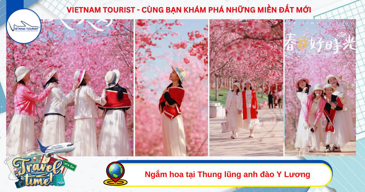 Ngắm hoa tại Thung lũng anh đào Y Lương (chỉ có trong mùa đông) chính nhờ chu kỳ nở hoa siêu dài hiếm có trong nước và kỳ tích sinh thái biến núi đồi trọc thành biển hoa, đã trở thành địa điểm check-in hàng đầu ở Vân Nam vào mùa đông xuân. Với diện tích 3.800 mẫu, trồng 370.000 cây anh đào thuộc 61 giống quý hiếm, đây là một trong những vườn anh đào quy mô lớn nhất và có bộ sưu tập giống phong phú nhất Trung Quốc. Trong đó, anh đào Vân Nam, anh đào mùa đông và anh đào chuông Đài Loan tạo thành thảm hoa ba chiều đan xen sắc hồng, phấn và trắng, kết hợp với "Đường hầm anh đào" dài 2,5 km và bục quan cảnh "Gương trời" mới bổ sung năm 2025, có thể chụp được cảnh quan kỳ ảo của biển hoa phản chiếu cùng bầu trời xanh.