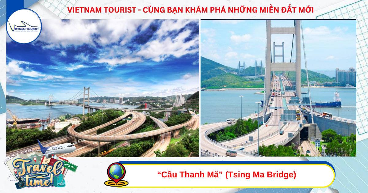 “Cầu Thanh Mã” (Tsing Ma Bridge) được xây dựng năm 1997 nối liền hai hòn đảo quan trọng của Hồng Kông là Tsing Yi và Ma Wan – cầu treo đẹp nhất Châu Á và lớn thứ 7 trên thế giới.