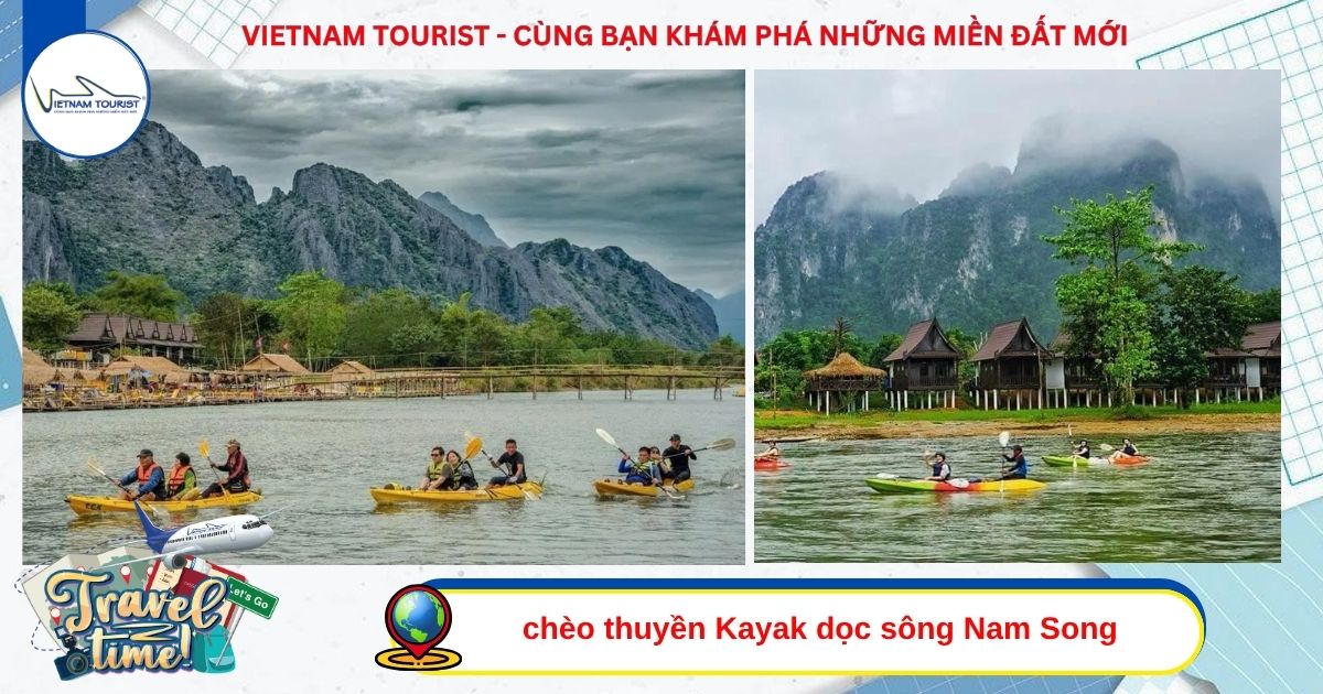 Tự do vui chơi, hoặc tham gia các hoạt động như: chèo thuyền Kayak dọc sông Nam Song, tắm suối, trải nghệm cảnh đẹp rừng núi thượng Lào bằng khinh khi cầu, ZIPLINE, Motorsky… (Chi phí tự túc).