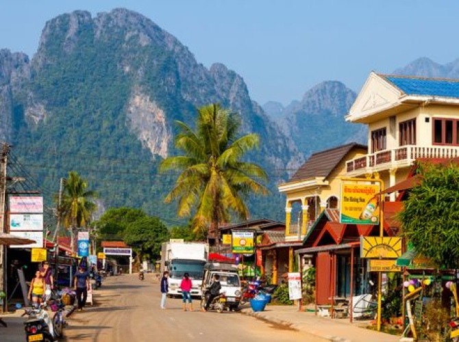 13h00: Xe đưa quý khách đến với Văng Viêng, một địa điểm du lịch nổi tiếng với những du khách đam mê thiên nhiên, tham quan: