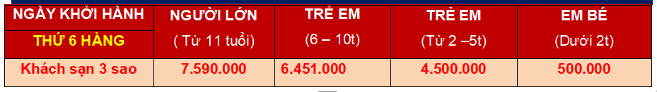 GIÁ TOUR BAO GỒM