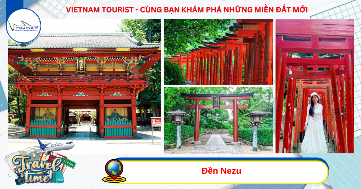 Đền Nezu– Vô số những chiếc cổng torii màu đỏ tươi được xếp thành những hàng dài để tạo thành một đường hầm đỏ nơi du khách có thể đi qua. Khung cảnh của ngôi đền từ xa còn rực rỡ hơn với những bụi cây xanh, các ao nhỏ với cá chép bơi lội và sân thượng bằng gỗ. Lễ hội Azalea- hoa đỗ quyên sẽ được tổ chức vào đầu tháng 4 đến đầu tháng 5. Vào thời gian này, những bụi hoa đỗ quên sẽ nở rực rỡ bao phủ hết cả khu vườn trên đồi những sắc màu hồng, đỏ và trắng, giúp ngôi đền có được vẻ đẹp mùa xuân tuyệt vời nhất.
